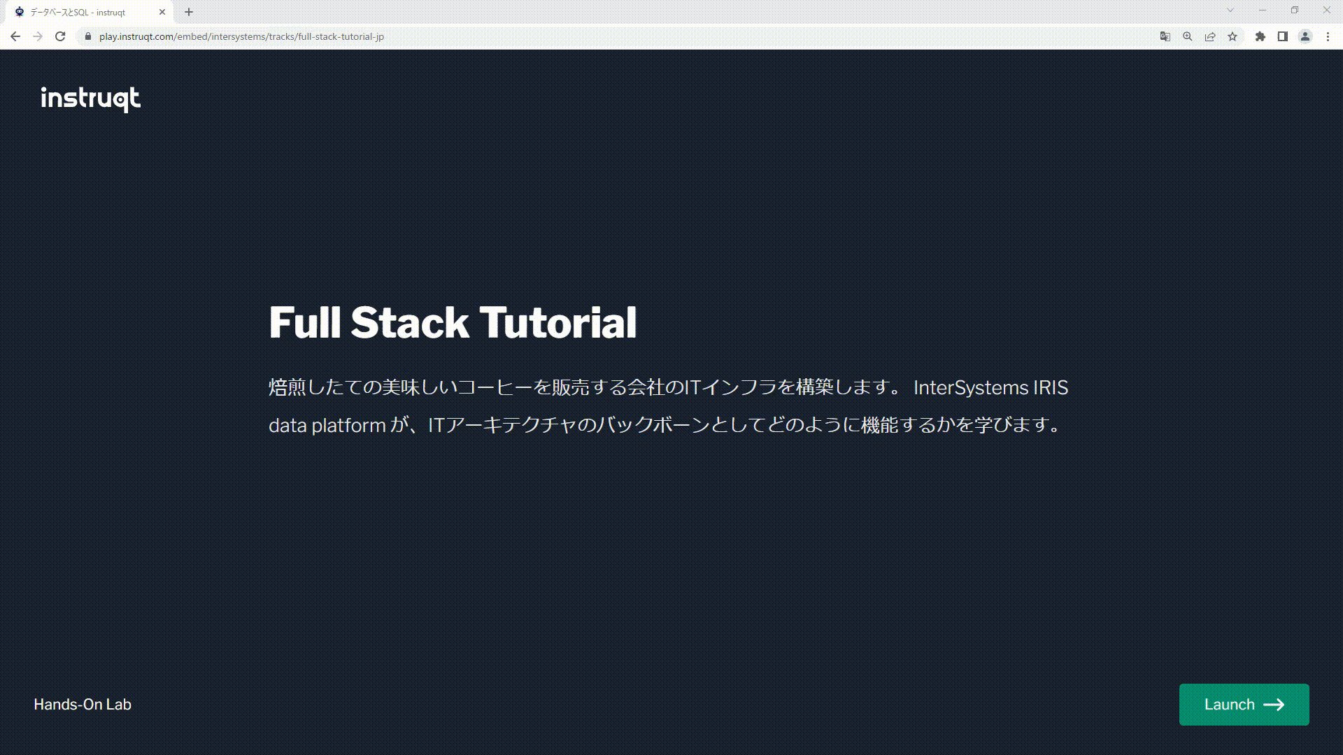 このページには、5種類のチュートリアルが用意されています。チュートリアはブラウザ上で動作し、VSCodeやIRISターミナル、管理ポータルなどチュートリアルで使用するすべての画面が1つのタブ内で開くようになっています。