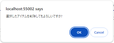 確認のダイアログが表示されますので、[OK] で進めます。なにかを削除するのは、いつも不安になりますが。。