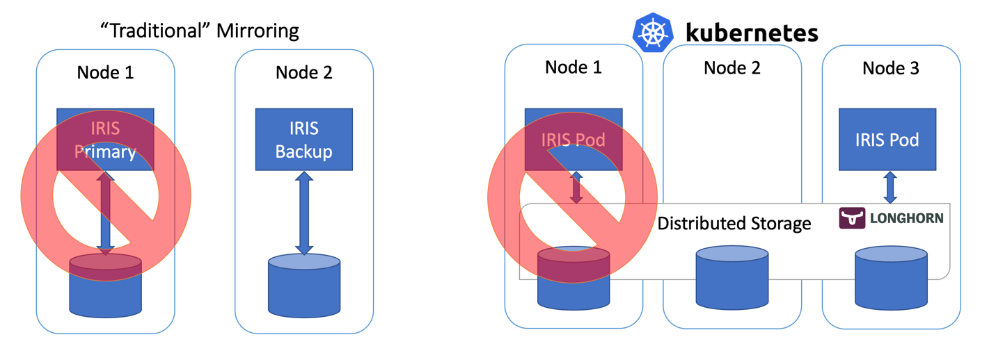 高可用性は、リージョン内のセカンダリゾーンで同期的に複製されたミラーを維持する InterSystems のデータベースミラーリングを使用して提供されています。