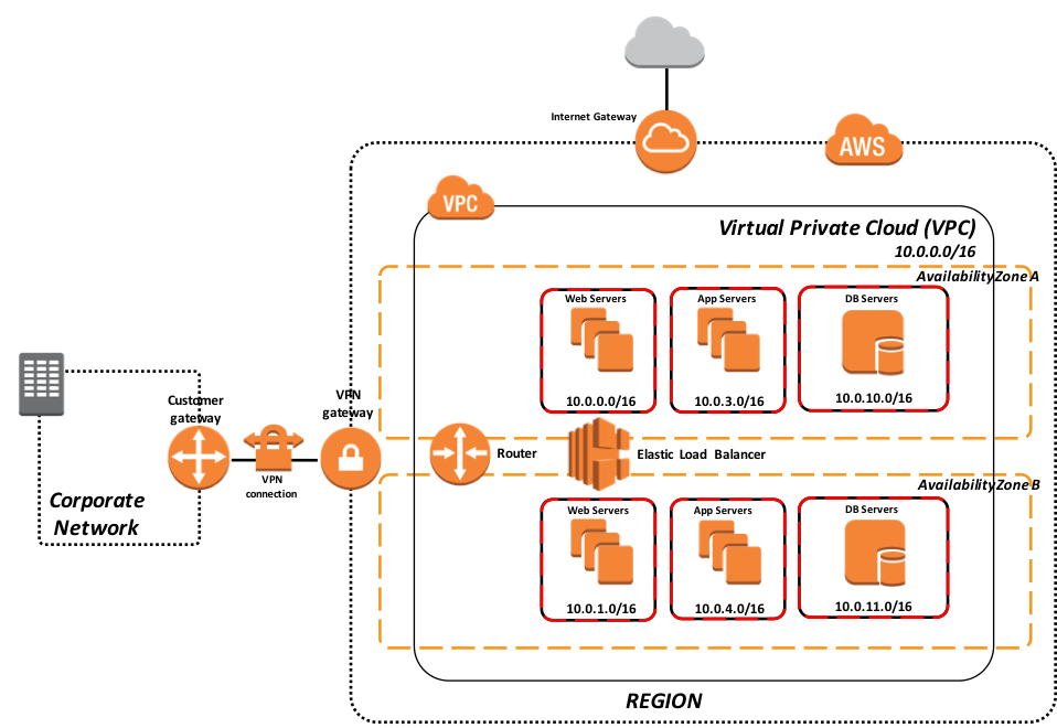 このシナリオでのこのモデルは、オンプレミスデプロイと AWS アベイラビリティーゾーン間の接続に VPN トンネルを利用し、AWS リソースを企業のデータセンターの拡張先として提供しています。 AWS Direct Connect などの他の接続方法もあります。 ただし、このドキュメントの中では説明していません。  AWS Direct Connect に関する詳細については、こちらを参照してください。