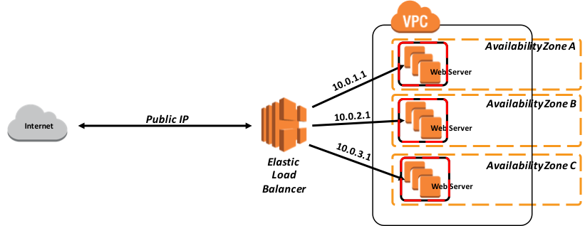 次の図4では、AWS 内のクラシックロードバランサーの簡単な例を示しています。