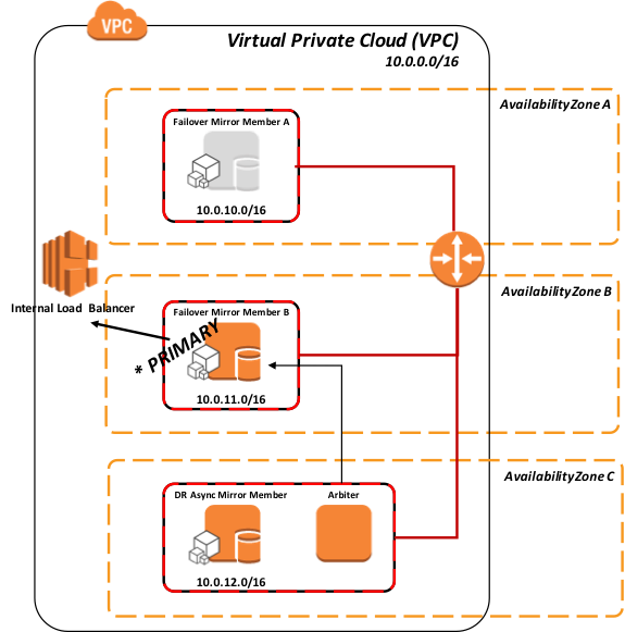xDBC、TCP/IP ソケットによる直接接続などの接続方法や、その他の直接接続プロトコルについては引き続き VIP を使用する必要があります。 この問題を解決するため、InterSystems のデータベースミラーリングテクノロジーは、AWS の Elastic Load Balancer(ELB)とやり取りして VIP のような機能を実現する API を使用することで、AWS 内でこれらの接続方法に対して自動フェイルオーバーを提供できるようにしています。その結果、AWS 内で完全かつ堅牢な高可用性を実現しています。