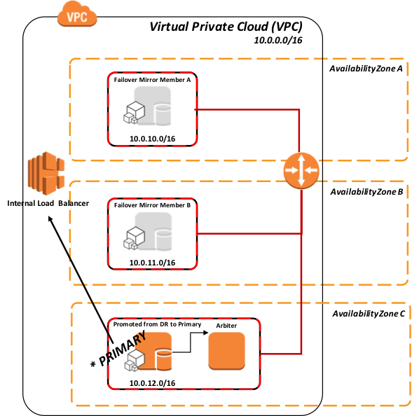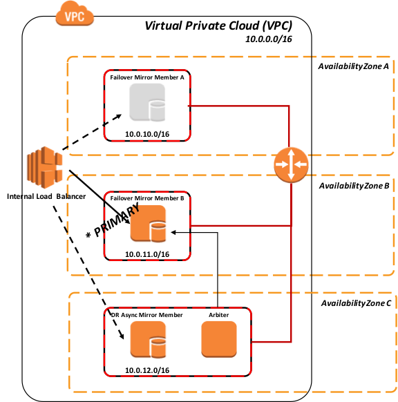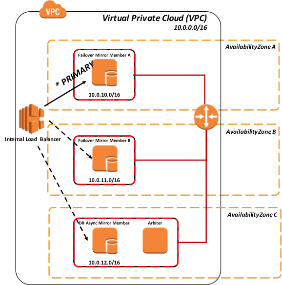 AWS にデータベースミラーをデプロイするための現在推奨されているのは、3 つの異なるアベイラビリティーゾーンの同じ VPC に 3 つのインスタンス(プライマリ、バックアップ、アービター)を構成することです。 こうすることで、AWS は常に 99.95% の SLA でこれらの VM のうち少なくとも 2 つが外部に接続されていることを保証します。 その結果、データベースのデータ自体の適切な分離と冗長性を提供しています。 AWS EC2 のサービスレベル契約に関する詳細については、こちらを参照してください。