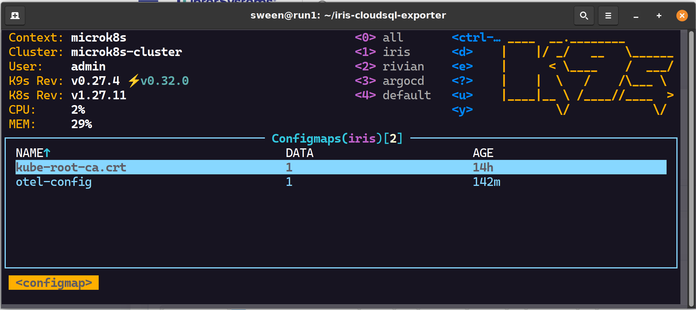kubectl -n iris create configmap otel-config --from-file config.yaml