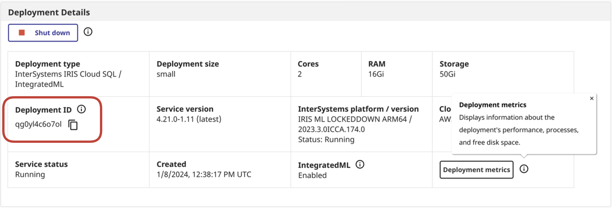 - 実行中の 1 つのデプロイメント(オプションで Integrated ML を使用)